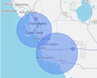 The brand-new home selling system described in this book is what works best to sell a home in 2025 and, if you're selling a property anywhere in Naples and the surrounding areas, up to Fort Myers, including the blue areas on this map, this is especially for you!